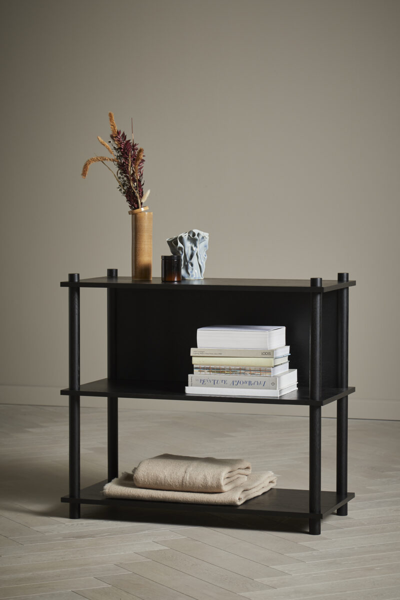 Elevate er et modulbasert hyllesystem med uendelige muligheter. Med forskjellige hyller og dybler kan Elevate utvides og settes sammen i et ubegrenset antall permutasjoner uten bruk av verktøy. Bare stable hyllene, stram pluggene og løft den deretter. De forskjellige elementene er pakket inn individuelt slik at du kan tilpasse akkurat den hyllen du ønsker – tilpasset dine behov og smak. Bruk den til bokser, kontorrekvisita, kunstverk eller planter. Du får bestemme.